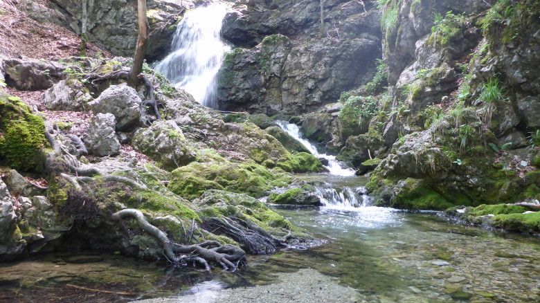 schön, das klare Wasser rauscht in mehreren Kaskaden