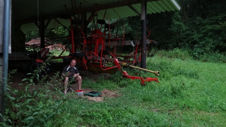 Unterstellen in einer Scheune. Ankunft im Campingplatz