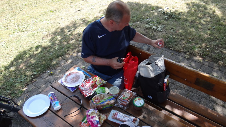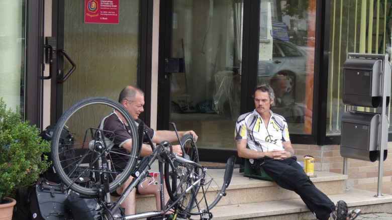 kurzer Fahrt wieder platt. Günter wechselt den Schlauch,