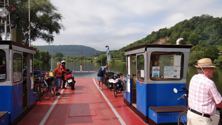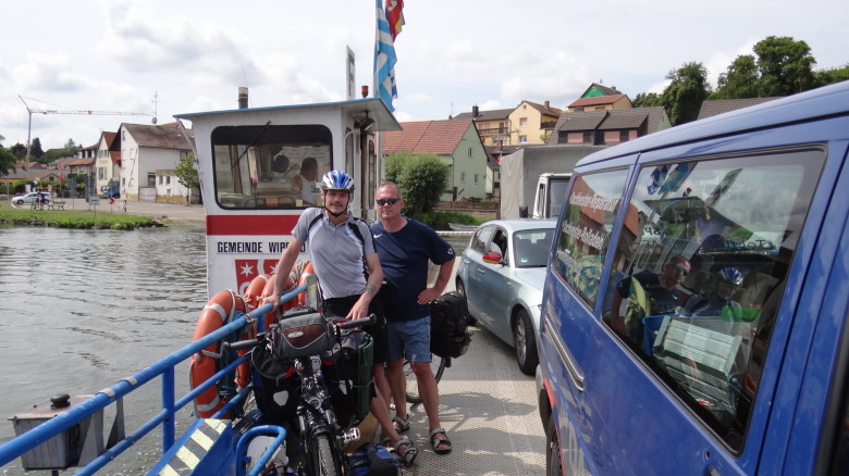 Überfahrt mit Fähre kurz vor Volkach. Schöne Altstadt