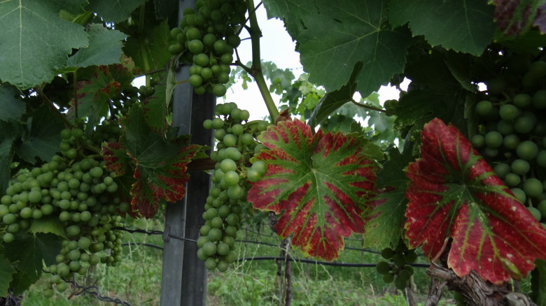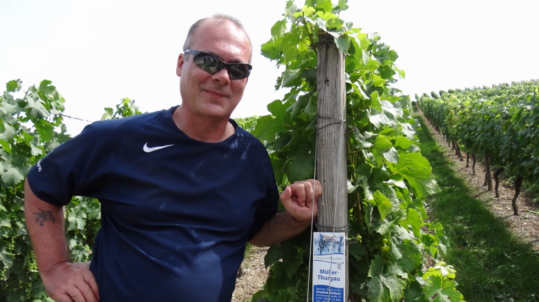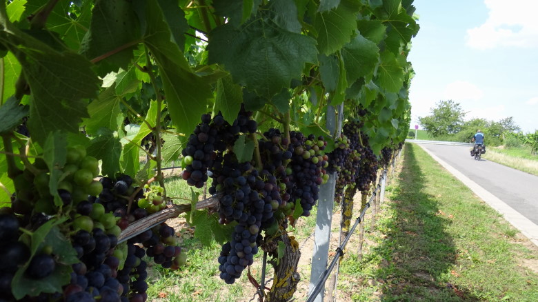 Wetter nach kühler Nacht. Flache Strecke durch Weinberge.