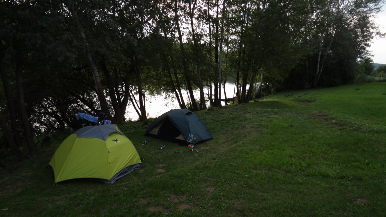 Würzburg dürfen wir unsere Zelte beim Kanuclub aufbauen.