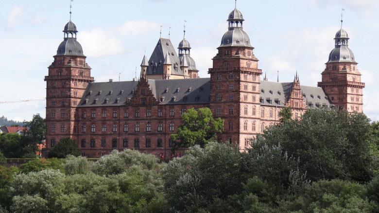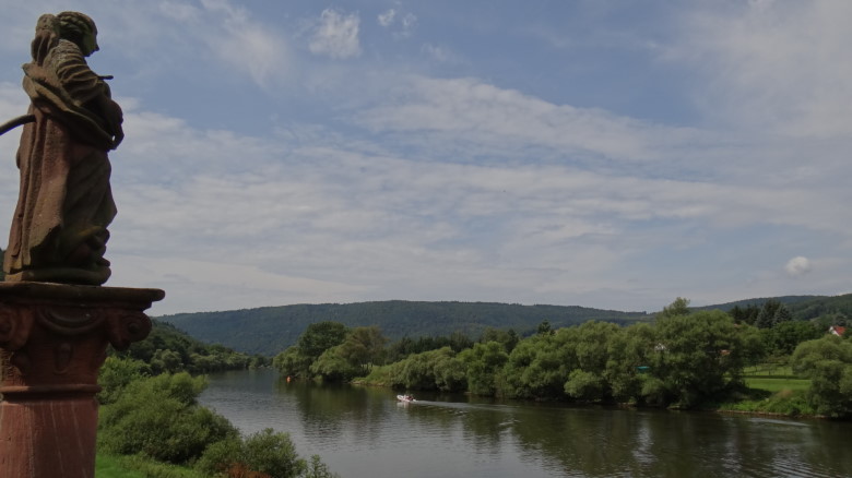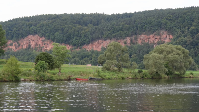 wird das Mainufer von roten Felsen gesäumt. Durch Dörfer
